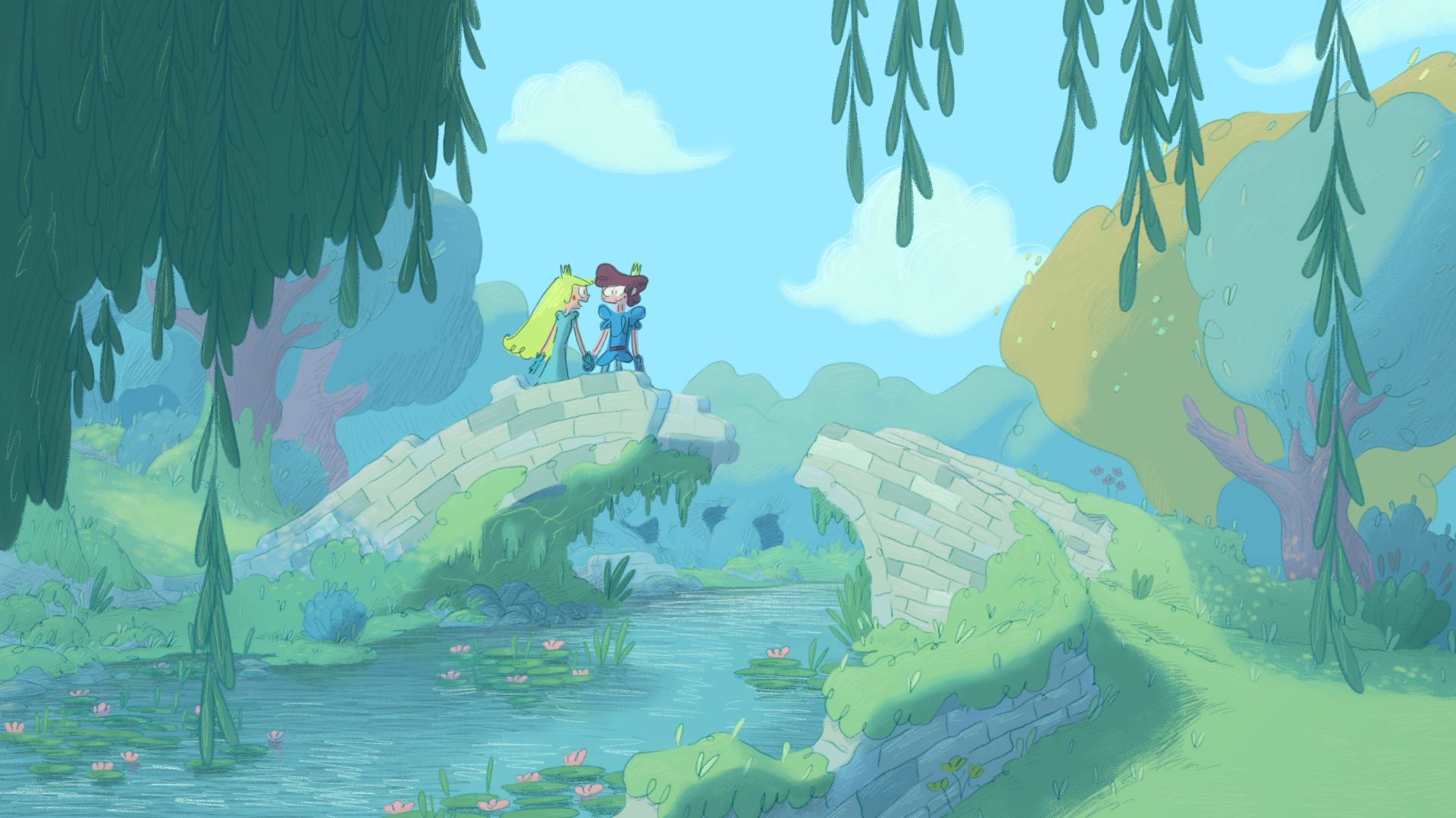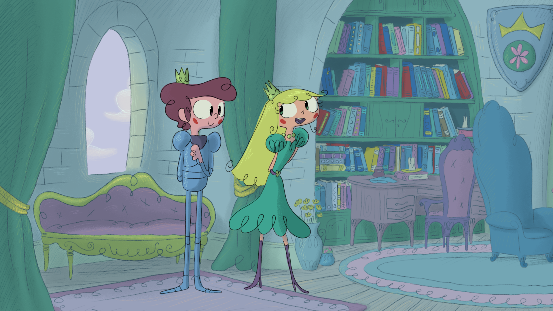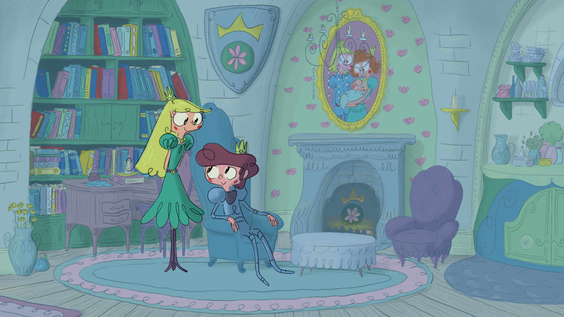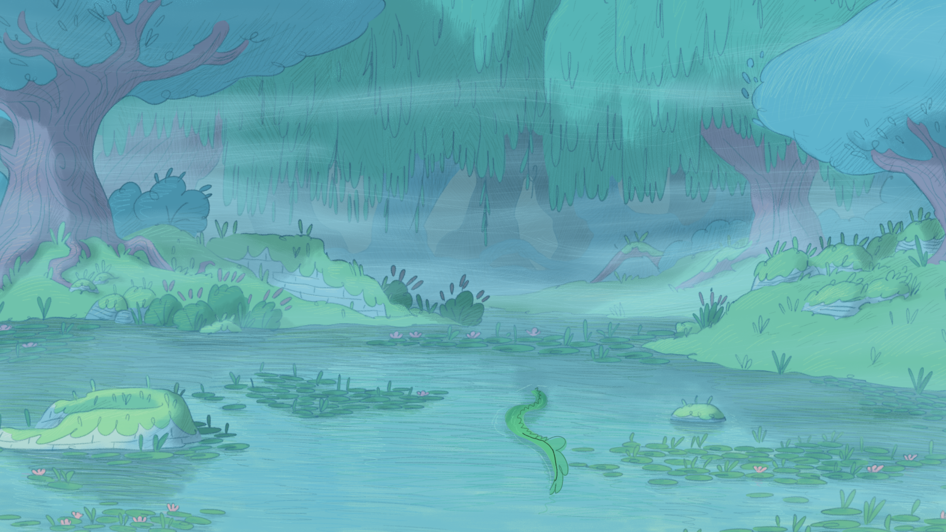 Pour ce projet, j'ai créé plusieurs dizaines de planches regroupant des croquis pour les décors intérieurs et extérieurs, incluant le château, des tours, le marais, la chambre de la princesse et celle du prince ainsi que différents petits objets de décoration.
