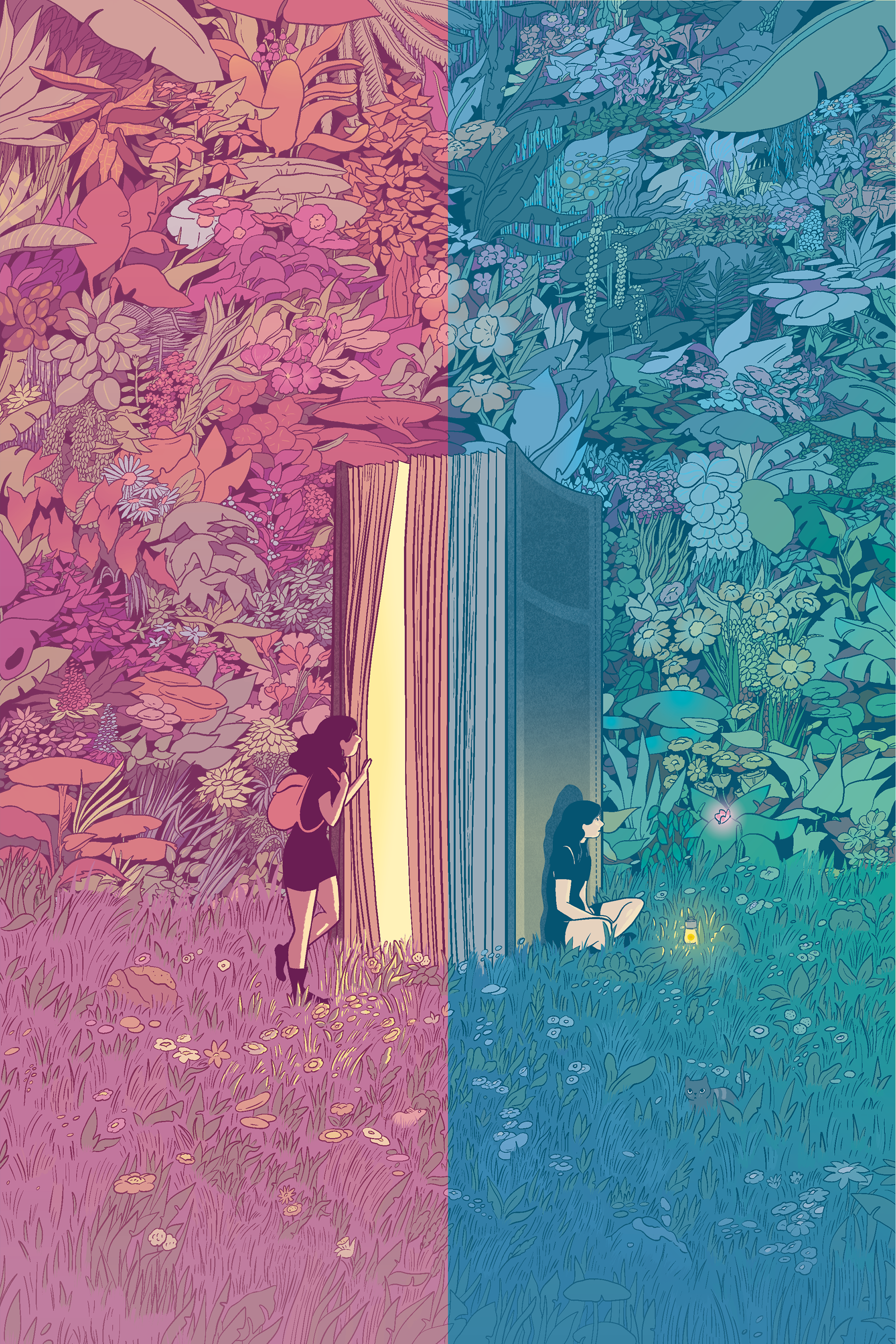 Le recto est un appel à l'aventure à travers la lecture et le verso raconte une autre histoire, celle d'un livre moins passionnant dont on se détourne.